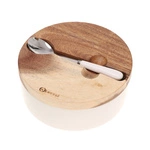 Maselniczka ceramiczna biała z pokrywką z drewna akacjowego i nożem Klausberg