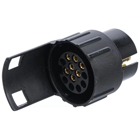 - Adapter wtyczki przyczepy 12V 7-stykowej na 13-stykową, wykonany z trwałego tworzywa sztucznego. Umożliwia łatwą konwersję z 7-stykowej wtyczki na 13-stykową, zapewniając kompatybilność między różnymi systemami elektrycznymi przyczep i pojazdów.