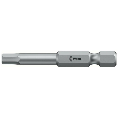 - Długi bit sześciokątny 8x 50 mm marki Wera. Profilem Hex-Plus zapewnia większą powierzchnię styku w gnieździe, minimalizuje efekt działania karbu i ryzyko odkształcenia śruby. Chwyt sześciokątny 1/4".