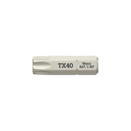 - Bit TORX® HF TX40 × 25 mm Wera 867/1, funkcja przytrzymywania śrub. System Take it easy i zgodność z DIN 3126 C6,3.