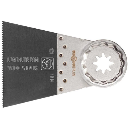 - Brzeszczot Long-Life 65×50 mm (Starlock Plus). Bardzo szerokie ostrze stabilizuje cięcie na prosto; rozwarte uzębienie radzi sobie z drewnem zawierającym gwoździe.