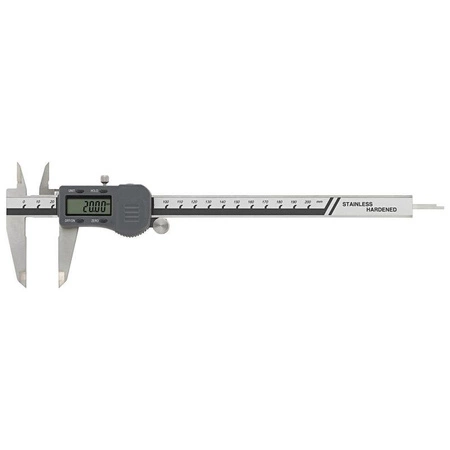- Suwmiarka cyfrowa 200 mm ze stali nierdzewnej z dokładnością 0,01 mm. Prostokątny głębokościomierz, LCD 12 mm i funkcja HOLD zwiększają komfort, a RS232 umożliwia przesyłanie danych do systemów kontroli jakości.