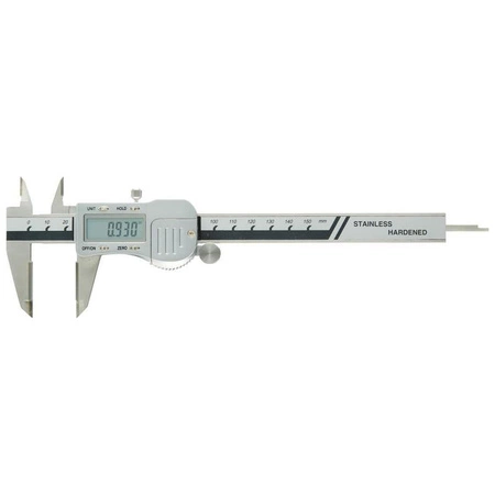 - Suwmiarka cyfrowa 150 mm ze stali nierdzewnej z powierzchniami pomiarowymi z węglika spiekanego. Dokładność 0,01 mm, LCD 12 mm i RS232 zapewniają trwałość, precyzję i możliwość transferu danych.