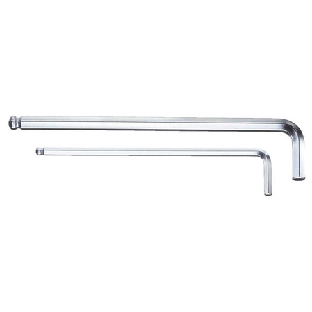 - Długi klucz imbusowy z kulką 8 mm wykonany ze stali chromowo-wanadowej 59CrV4, chromowanej dla zwiększenia odporności na korozję. Dzięki kulce klucz zapewnia wygodę i precyzję pracy w trudno dostępnych miejscach, oferując trwałość i niezawodność.