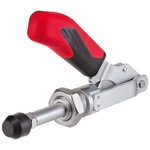 Części dźwigni i drążki przesuwne ze stali ulepszonej cieplnie. Punkty łożyskowe smarowane. Docisk szybkomocujący z drążkiem przesuwnym z gwintem od czoła do bezpośredniej zabudowy na ściankach blaszanych lub w przyrządach.