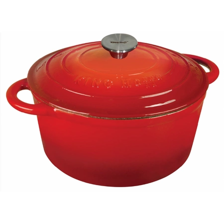 Z zewnątrz garnek pokryty warstwą czerwonej, żaroodpornej emalii. Od środka warstwa beżowej emalii.
