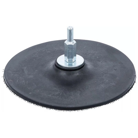 - Gumowa tarcza oporowa Ø 125 mm z trzpieniem 6 mm i mocowaniem na rzep. Umożliwia szybką wymianę materiałów ściernych i precyzyjne szlifowanie.