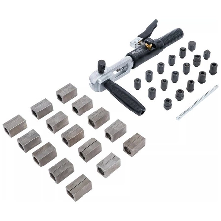 - zawiera narzędzia i adaptery o różnych rozmiarach do kielichowania przewodów paliwowych, hamulcowych, przewodów chłodnicy oleju przekładniowego i klimatyzacji