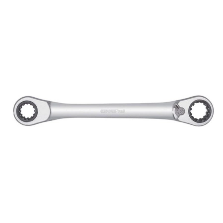 - Klucz oczkowy dwustronny 10, 13, 17, 19 mm z grzechotką 72T i przełącznikiem kierunku. Stal Cr-V, matowo-satynowane wykończenie.