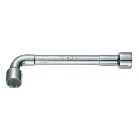 Gedore 25 PK 13 to profesjonalny klucz nasadowy dwustronny o rozmiarze 13 mm, wyposażony w głębokie otwory nad sześciokątami umożliwiające mocowanie długich śrub gwintowanych. Solidna konstrukcja z dwoma gniazdami sześciokątnymi i otworem otwierającym się po stronie kątowej sprawia, że klucz może być używany do mocowania pokrętła przesuwnego (np. nr 26 D, należy zamawiać osobno). Powierzchnia klucza jest chromowana, a końcówki polerowane, co zapewnia wysoką trwałość i odporność na zużycie.