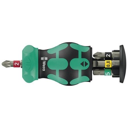 - Uchwyt Stubby Wera Kraftform Kompakt RA 2, 6 elementów. Rękojeść z grzechotką i magazynkiem, bity BiTorsion 25 mm PH, PZ, TORX® i płaskie.