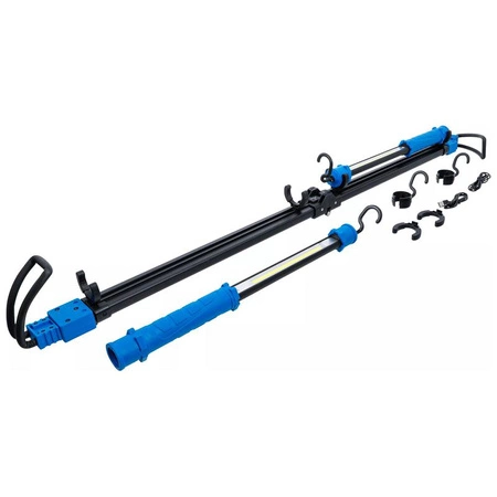 - Lampa robocza na maskę silnika z teleskopowym mocowaniem rozporowym, wyposażona w dwie lampy LED COB o mocy 15 W każda. Zapewnia jasność do 1500 lm, a regulowane haki z pianką chronią maskę przed zarysowaniami. Czas pracy wynosi do 4 godzin.