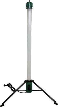 Wykonanie: wytrzymała obudowa z tworzywa sztucznego, cylinder dyfuzora z rozkładanymi stopkami z wbudowanym zwijaczem kabla. Równomierne oświetlenie o dużej powierzchni i niskim współczynniku olśnienia, kąt padania wiązki światła 360°. Z gniazdem ze stykiem ochronnym w podstawie. Dostawa z paskiem na ramię.