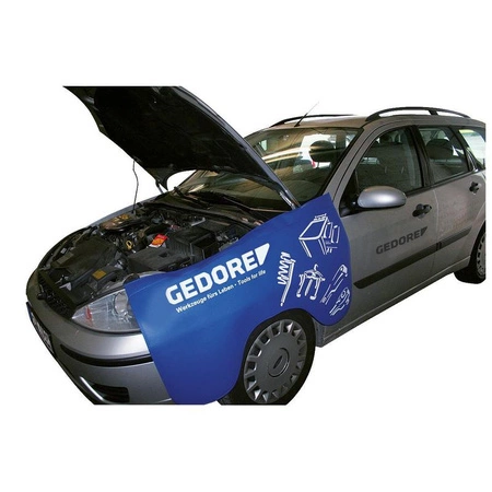Gedore 907 to profesjonalna osłona na nadkola, przeznaczona do ochrony karoserii podczas prac naprawczych i serwisowych. Wykonana z trwałej, wyściełanej skóry syntetycznej z wzmocnionymi krawędziami, skutecznie zabezpiecza przed zarysowaniami, wgnieceniami i zabrudzeniem.