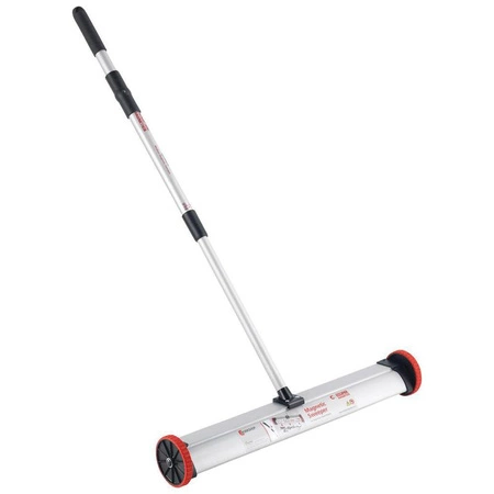 - Miotła magnetyczna 620 mm z teleskopowym trzonkiem ułatwia zbieranie metalowych odpadów z dużych powierzchni. Silny magnes ferrytowy i mechanizm czyszczenia zwiększają efektywność i bezpieczeństwo pracy.