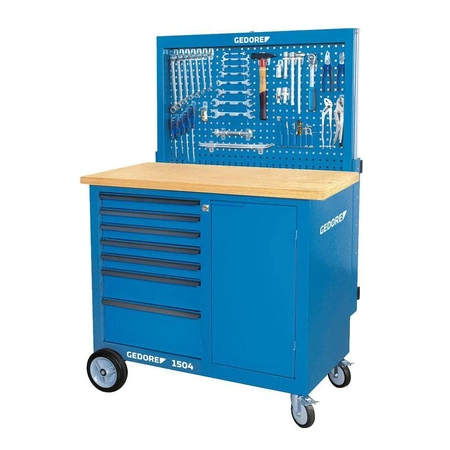 Mobilny stół warsztatowy Gedore BR 1504 0511 LH z 7 szufladami, tylną ścianką i zestawem haków