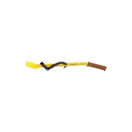 - Łom leśny 800 mm ułatwia podważanie i obracanie pni do Ø 25 cm. Stalowa rama, kute ostrze i płyta oporowa zwiększają trwałość, a uchwyt korkowy i hak obrotowy poprawiają kontrolę i ergonomię.