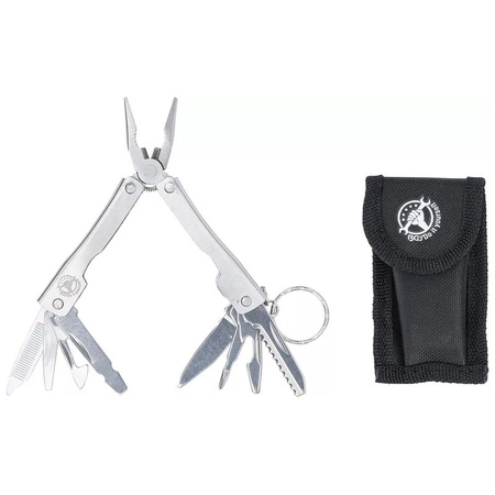 - Kieszonkowe narzędzie wielofunkcyjne 8w1 z nierdzewnej stali, zawierające nóż, wkrętaki, otwieracz do kapsli, mini piłę, pilnik, kombinerki i inne. Kompaktowe, składane (70 mm po złożeniu), z etui na pasek, idealne do codziennego użytku.