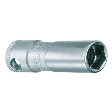 Nasadka do świec zapłonowych GEDORE 57 MH o rozmiarze 18 mm i napędzie 1/2" jest wyposażona w dwa silne mini magnesy, które pewnie przytrzymują świecę zapłonową podczas montażu i demontażu, nawet w trudno dostępnych miejscach. Dzięki swobodnej komorze montażowej, która zapewnia miejsce na świecę, narzędzie ułatwia instalację, chroniąc ceramiczny rdzeń świecy. Nasadka wykonana z wysokiej jakości stali wanadowej 31CrV3, chromowanej, precyzyjnie szlifowanej. Długość całkowita wynosi 64 mm.