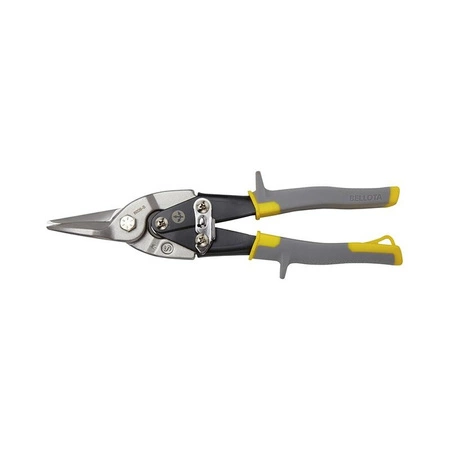 - Nożyce proste z kutymi ostrzami CR-MO zapewniają dokładne cięcie blach do 1,5 mm. Ząbkowana krawędź poprawia prowadzenie, a ergonomiczne uchwyty zwiększają wygodę pracy. Narzędzie polecane do precyzyjnych linii.