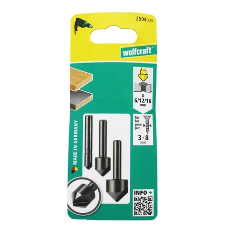 Zestaw pogłębiaczy 6 / 12 / 16 mm WS trzpień okrągły 6 mm 2504000 WOLFCRAFT