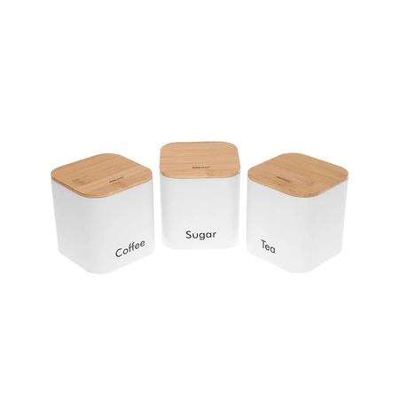 Pojemnik kuchenny zestaw 3 elementy stal-bambus, biały KINGHoff