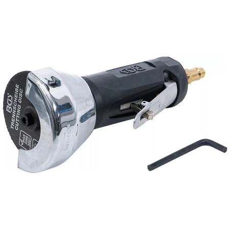 - Przecinarka pneumatyczna o średnicy tarczy 75 mm i otworze 10 mm. Wyjątkowo krótka konstrukcja (185 mm) oraz wysoka prędkość obrotowa 20 000 obr./min. Ciśnienie robocze 6,3 bar, waga 0,78 kg. Idealna do precyzyjnego cięcia w ciasnych przestrzeniach.