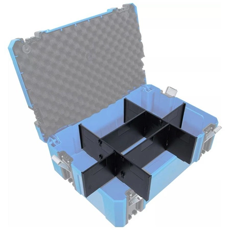 - Zestaw 6 przegród do walizki systemowej M. Różne wymiary umożliwiają elastyczne podziały i porządek wewnątrz skrzyni.