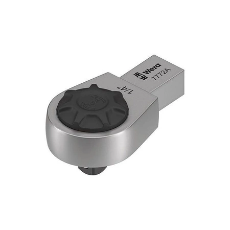 - Grzechotka wtykowa Wera 7772 A 1/4", uchwyt 9×12 mm. Mechanizm 72T (5°), stal CrV, blokada przyciskiem i zmiana kierunku pokrętłem.