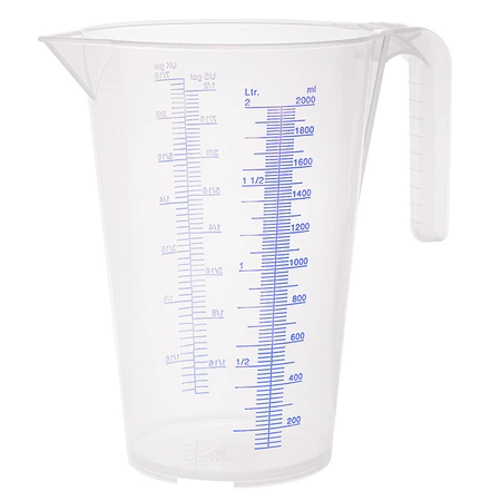 Miarka polipropylenowa 2 l przezroczysta PRESSOL – do cieczy technicznych i spożywczych