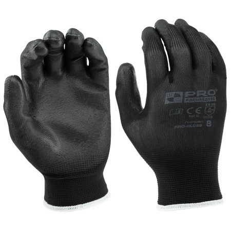 Rękawice robocze ochronne poliuretowane czarne PRO rozmiar 8