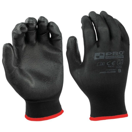 Rękawice robocze ochronne poliuretowane czarne PRO rozmiar 9