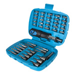- Rękojeść z uchwytem na bity to funkcjonalne narzędzie z grzechotką, umożliwiającą obrót w lewo, prawo oraz zablokowanie. Posiada stalowy uchwyt 6-kątny z magnesem, a zaokrąglona rękojeść z tworzywa sztucznego jest odporna na rozpuszczalniki, oleje i kwasy