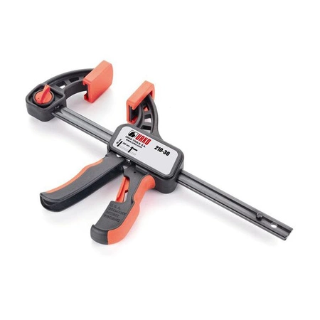 - Ścisk jednoręczny 150×80 mm z funkcją rozpychacza. Ergonomiczny uchwyt, przycisk szybkiego zwolnienia i prowadnica 20×6 mm zapewniają kontrolę i wygodę pracy.