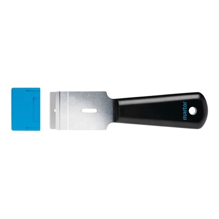- Skrobak ręczny z ergonomiczną rękojeścią i dużym wysuwem ostrza umożliwia skuteczne usuwanie kleju i zabrudzeń z gładkich powierzchni.