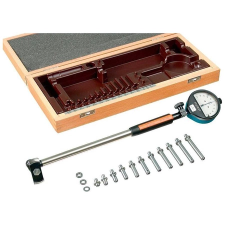 Wykonanie: samocentrująca, precyzyjne przenoszenie przemieszczenia trzpienia pomiarowego przez element uginający się na wskaźnik wartości pomiarowej. Dokładność powtarzalności ≤ 0,5 µm. Sprężynujący talerzyk centrujący umożliwia pomiar w każdej pozycji. Trzpienie pomiarowe z węglika spiekanego. Dostawa z uchwytem, stałymi trzpieniami pomiarowymi, tarczami pomiarowymi i certyfikatem kalibracji fabrycznej, w drewnianej kasecie.