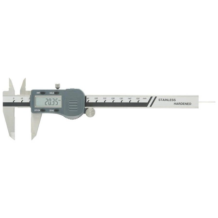 - Suwmiarka cyfrowa 150 mm ze stali nierdzewnej z wyjściem RS232. Dokładność 0,01 mm, LCD 12 mm i okrągły głębokościomierz umożliwiają wszechstronne pomiary. Funkcja HOLD i transfer danych zwiększają komfort.