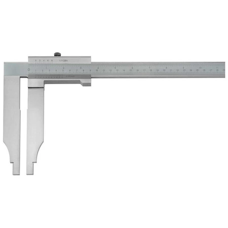 Model ten nie posiada szczęk górnych ani precyzyjnej regulacji, co sprawia, że jest prosty w obsłudze i niezawodny w typowych pomiarach warsztatowych. Długie szczęki o długości 150 mm pozwalają na wygodne mierzenie zarówno wewnętrznych, jak i zewnętrznych wymiarów dużych elementów.