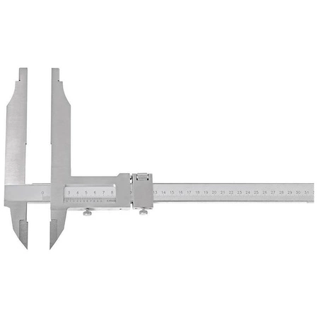 - Suwmiarka warsztatowa 800 mm, szczęki 150 mm, odczyt 0,05 mm i 1/128”. Hartowana stal i matowe chromowanie zapewniają trwałość, a śruba ustalająca stabilizuje pomiar dużych detali.
