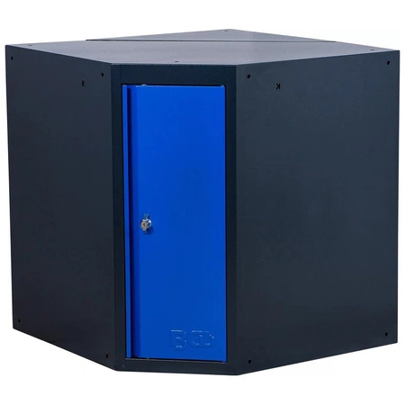 - Szafka narożna warsztatowa 1-drzwiowa, do systemów w kształcie litery L. Stabilna, malowana proszkowo stal, centralny zamek.