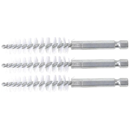 - Szczotka nylonowa 13 mm 1/4", 3-częściowa. Do delikatnego czyszczenia i gratowania bez ryzyka uszkodzeń. Możliwość pracy z wiertarkami.
