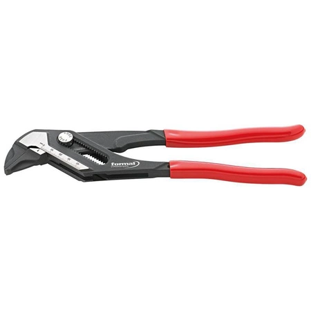- Szczypce-klucz 250 mm ze stali Cr-V, główka fosforanowana. Gładkie szczęki równoległe, regulacja przyciskiem, mechanizm zapadkowy z dużą siłą zacisku.