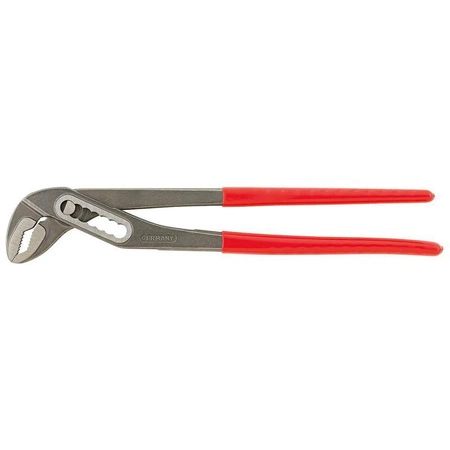 - Szczypce do rur 250 mm zgodne z DIN ISO 8976. Ząbkowane szczęki hartowane 61 HRC, złącze wsuwkowe, rękojeści powlekane tworzywem.