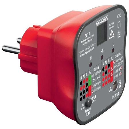 Tester gniazd wtykowych SDT 1 z testem PE i wyświetlaczem LCD BENNING