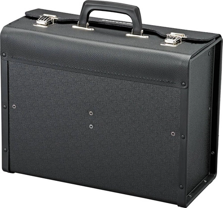 Wykonanie: części boczne i część spodnia z odpornego na uderzenia i wilgoć tworzywa sztucznego HDPE, klapa z mocnej skóry bydlęcej, z uchwytem do noszenia i otworem w uchwycie. Bardzo stabilna, ze zintegrowanymi, zabezpieczającymi spód ślizgaczami. Zamykana na 2 zamki zatrzaskowe. Dostawa bez zawartości.