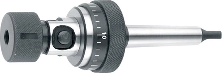 Wykonanie: stożek Morse’a z płetwą DIN 228-B, bez szybkiego powrotu, bezstopniowa regulacja sprzęgła bezpieczeństwa poprzez obrót nakrętki zaciskowej z podziałką, odpowiedni do gwintów prawych i lewych. Proste odwrócenie tarczy krzywkowej pozwala na przestawienie ze sprzęgła krzywkowego na tarcie powierzchniowe, do małych gwintów. W bezstopniowo mocujących szczękach zaciskowych można mocować wszystkie chwyty gwintowników dla całego zakresu obróbkowego, także dla wymiarów pośrednich i calowych.