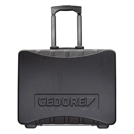 - Walizka na kółkach Gedore WK 1040 L, pusta. Obudowa ABS z aluminiową ramą, teleskopowy uchwyt, rolki inline, nośność 30 kg, zamki cylindryczne i szyfrowy.