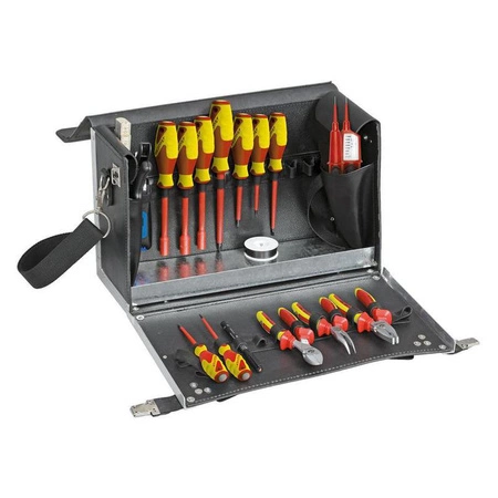 - Walizka narzędziowa Gedore 1091 dla elektryków - 18-częściowy zestaw w skórzanej walizce ze stalową wanną dolną. Idealny dla początkujących i do prac mobilnych.