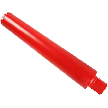 Wiertło diamentowe koronowe PRAXER 77 x 450 mm to profesjonalne narzędzie przeznaczone do wiercenia otworów metodą mokrą w betonie zbrojonym, żelbecie, gresie, kamieniu naturalnym oraz prefabrykatach budowlanych. Wykonane w Polsce z precyzyjnie kalibrowanych rur stalowych pochodzenia niemieckiego oraz segmentów diamentowych o dużej koncentracji ziaren, spawanych indukcyjnie, zapewnia dokładność, stabilność i długą żywotność.