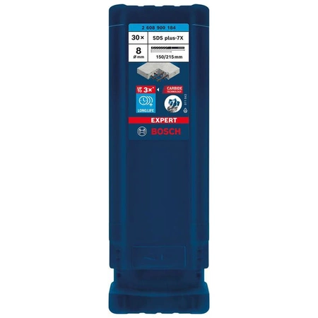 Wiertło udarowe Ø 8 mm, długość spirali 150 mm, długość 215 mm SDSplus-7X, 30 szt., Bosch